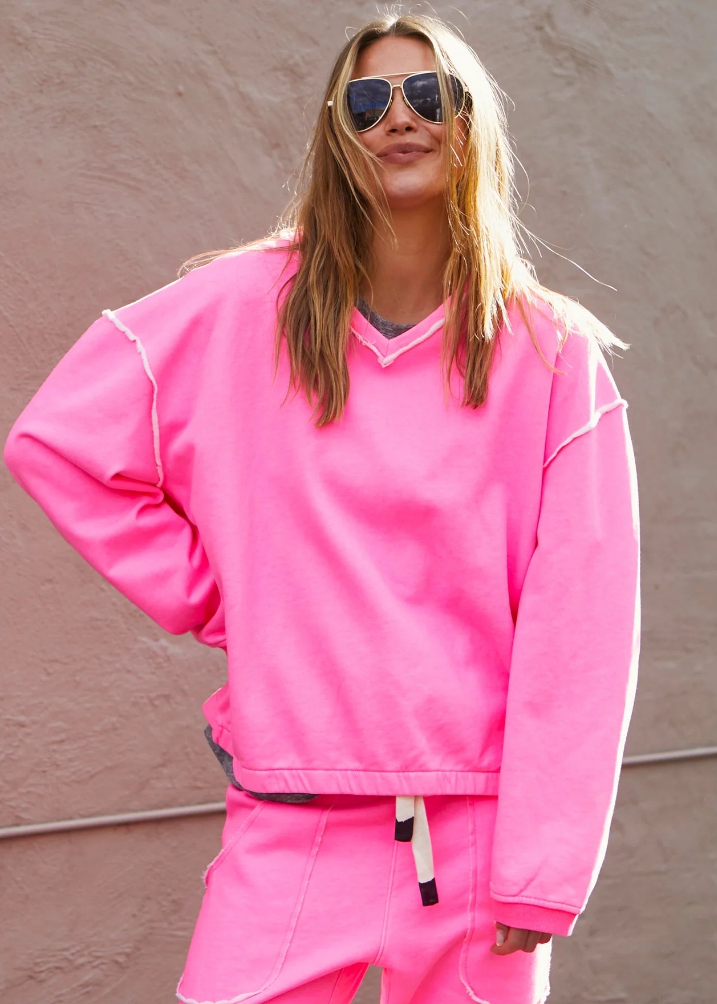 Capri V Neck Sweater - Neon Pink