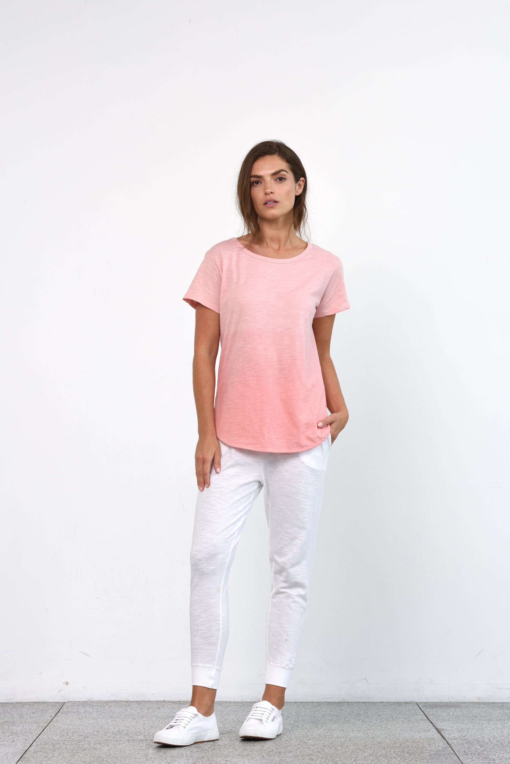 The Clé Charlotte Tee features a simple, round neckline and a longer length front & back hem with flattering scooped sides. This Tee is a perfect layering piece - easily worn under a sweater or on its own.