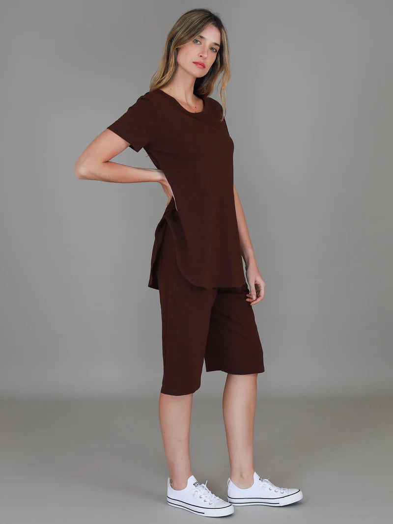 Love the Hamilton Tank? Meet its stylish new sibling – the Elwood Tee! With a classic round neckline, flattering scooped sides, and an effortlessly cool longer-length hem, this tee is your new layering bestie.