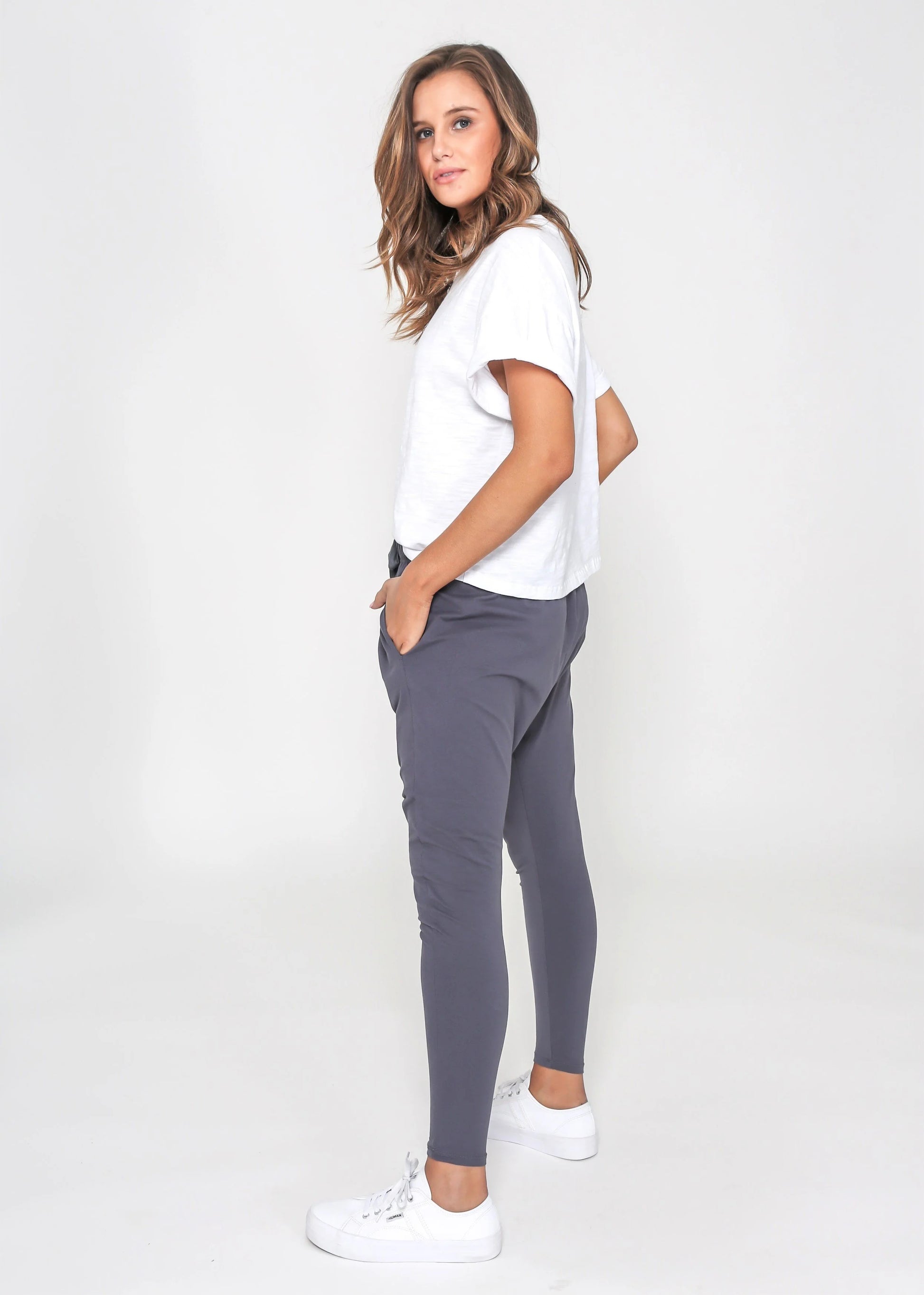 With an elastic waist, tie detail, and a relaxed drop crotch, they offer all the comfort you crave. The fitted leg keeps things sleek, while the pockets add a touch of practicality.