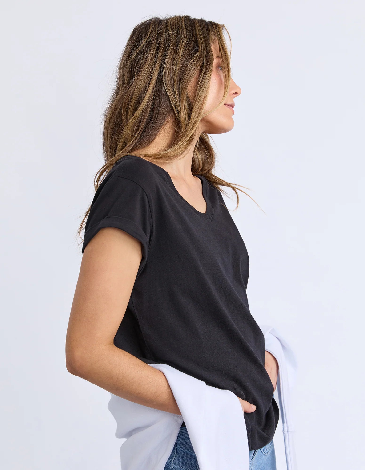 This elevated tee is a must-have staple piece in any wardrobe. An easy choice for work or play, and crafted from a beautiful soft cotton - this classic V Neck cut tee offers both comfort and style.