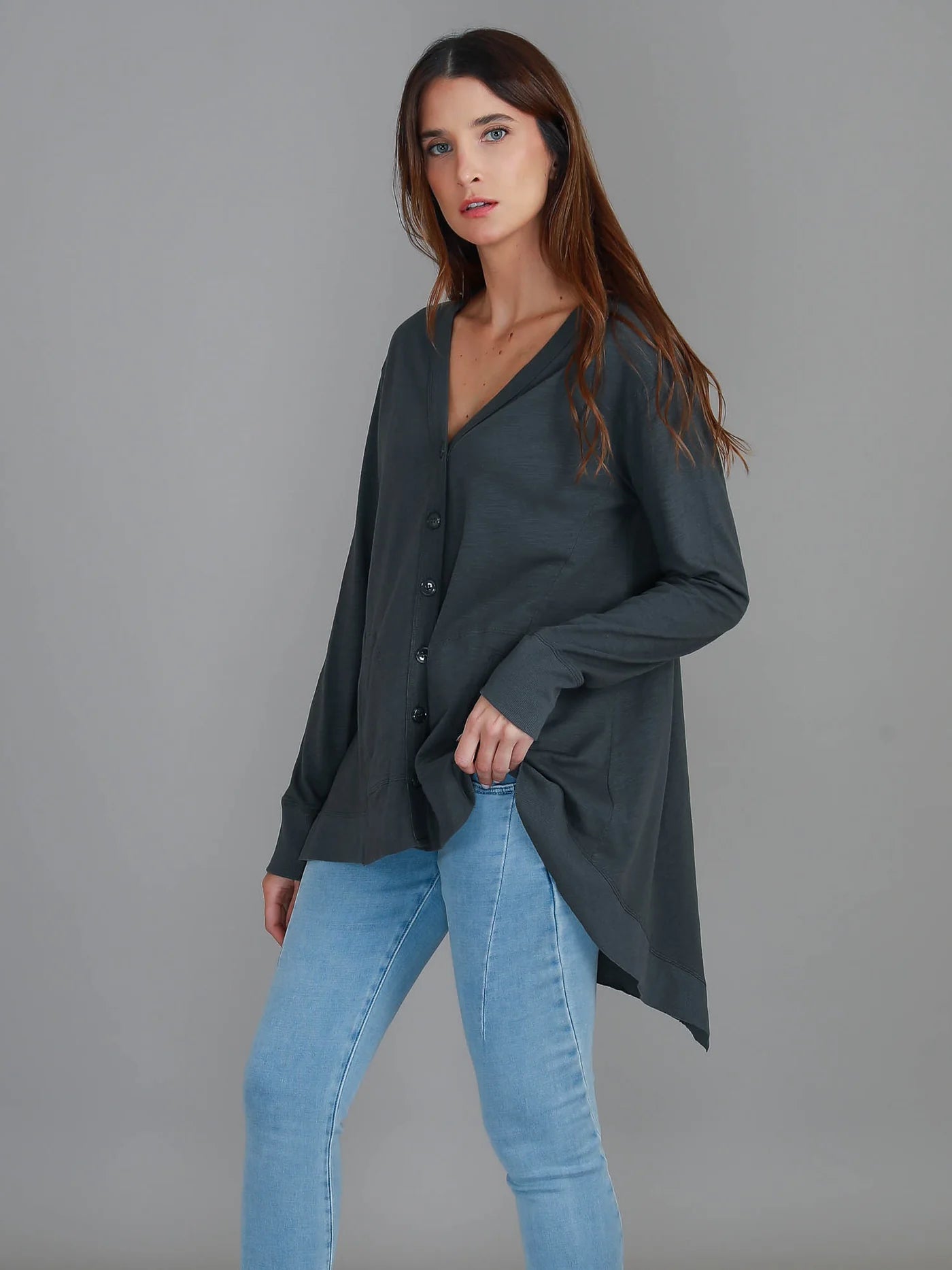 With a true-to-size fit and midweight, stretchy fabric, the Weslie drapes beautifully, offering a flattering longline length. The button front adds a touch of sophistication, while the slouchy silhouette keeps it relaxed and on-trend. Plus, large side pockets mean you can carry your essentials hands-free!